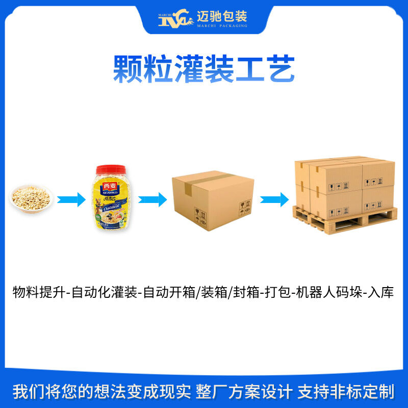 迈驰,是一家专业生产颗粒灌装机生产线的生产厂家,无扬尘、高精度,可根据物料不同特性定制包装流水线设备,一对一定制化服务,26年包装行业经验助力生产企业将本增效,提高产能。